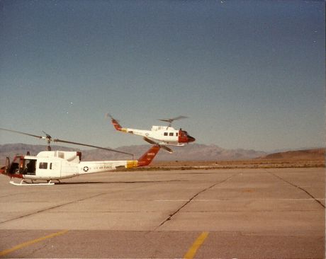 UH-1N's OF DET. 1, 57th FWW (TAC) ON RAMP AT INDIAN SPRINGS AAF, NV.