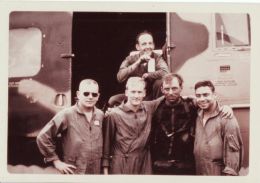 SAR For F-105D Pilot Maj. Maurice E. Seaver Jr. 10 July 1967 ~CLICK ON PHOTO TO ENLARGE~ COURTESY OF FLOYD W "BUCK" WATSON JR. H-3E Rescue Crew photo L-R Capt. Fetcher (CP), Sgt. Fabroni (PJ), Floyde Watson (FE)(in cabin door), Maj. Maurice Seaver (survivor) and Capt. First (P) ~CLICK ON PHOTO TO ENLARGE~