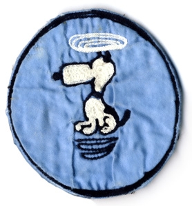 The "Flying Snoopy" patch was worn by the H-19 Missile Site Support personnel at Forbes AFB, circa 1961. The image on the left is a copy of the original sketch that cartoonist Charles Schulz, of Peanuts fame, did for the patch. On the back it says, "Helicopter Operations, Forbes AFB, Kansas". USAF ROTORHEADS thanks Brett Foster for these images as well as the additional images we have on our patches page. Brett's father is James W. Foster who is a retired Air Force helicopter pilot |