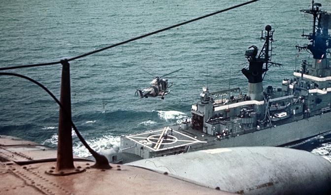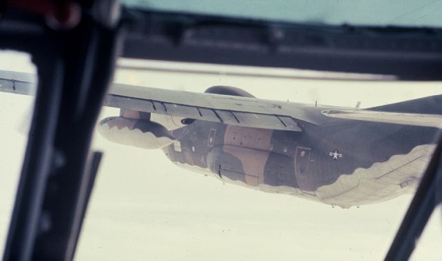 These were practice runs all though we have had to use Hi-Drinks when the weather was to bad to use the C-130. One lucky day for us was when the weather was to bad for both the C-130 and Hi-Drinks we had to get fuel at Dong Ha in the middle of a rocket attack. Needless to say I had to change my shorts when we got back. Usually Navy personnel took care of the deck work. (ART BRAND)