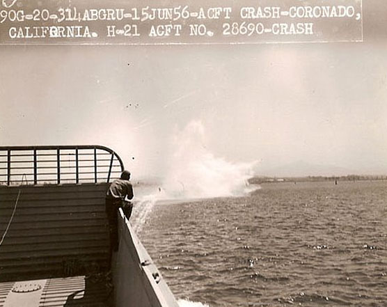 The second day we moved to San Diego bay. A1C Heine was flying on my aircraft. I was on the beach this time watching the operation. Towing the LCM (Mick) boat didn’t even straighten out the tow cable. They put the engines on the boat in full reverse. Still no problem.