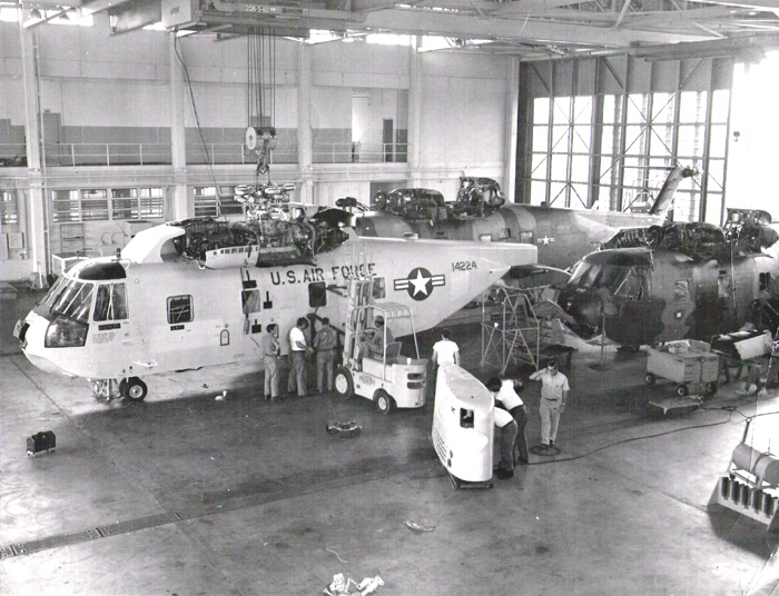 A photo that was taken in the hanger at Patrick AFB some time around April 1971 just before Otto Kroger retired. I believe he was the Chief of Maint. at the time. I was TDY from the 67th ARRS at RAF Woodbridge to assist in repairing the Jolly Greens you see in the back round that were brought in on a C-133 from SEA.