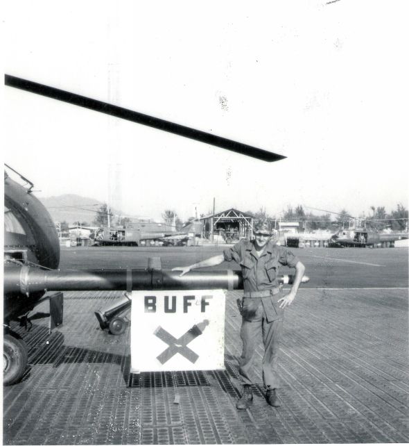RON LOFTIS WITH SELF MADE BUFF FLAG/1st HH-53B TO UDORN AUG 67