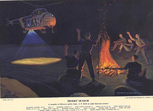 A campfire in Morocco guides Capt. A. E. Selch to eight American airmen