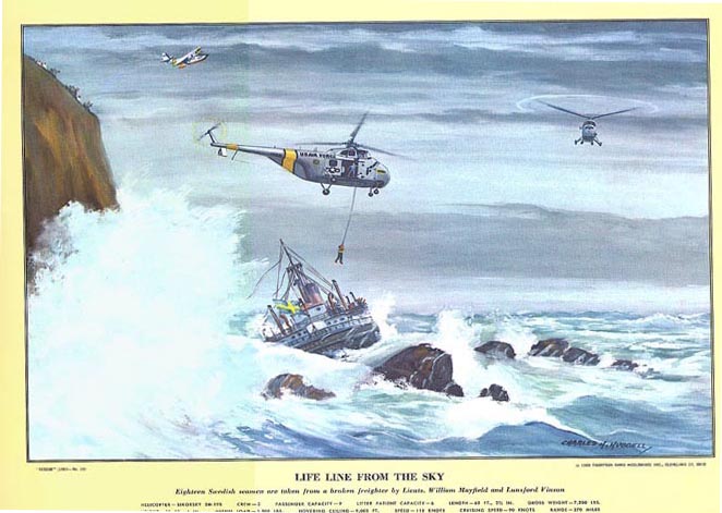 Eighteen Swedish seamen are taken from a broken freighter by Lieuts. William Maysfield and Lunsford Vinson