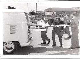Det 6 PARRC Ops. rear L-R Capt. Herr, Capt. Duffy, Maj. McAllister, front L-R Chuck Severns, Jerry Bucknall, unkn fireman. |