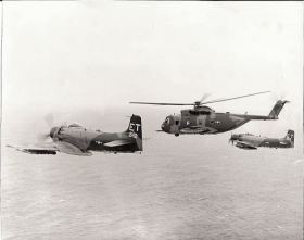 HH-43B 62-4565 Det. 6 PARRC, rear L-R Capt Crabb, Capt Duffy, Maj. McAllister, Capt Herr, front L-R SSgt. Hubbard (eng.), Jerry Bucknall, unkn, Chuck Severns and Al Reed. | ||