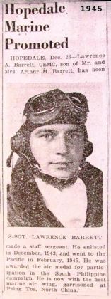 LAWRENCE A. BARRETT Colonel, U. S. Air Force, Retired Veteran of Korea, Viet Nam & Cold War Staff Sergeant, U. S. Marine Corps Veteran of World War 2, Philippines, China & Cold war BORN: Milford, Massachusetts - 1926. PARENTS: Arthur M. & Adelaide B. Barrett. SIBLINGS: One older sister & two younger brothers. GREW UP IN: Hopedale, Massachusetts. MARRIED TO: Eleanor L. Barrett. CHILDREN: Two sons & two daughters [Seven grandchildren, (two boys & two girls)]. INTERESTS GROWING UP: Flying, Boy Scouts & photography (Joined the local camera & photography club). EDUCATION: K-12 Hopedale, Massachusetts; U. S. Naval Photo School, Pensacola, Florida; School of Modern Photography, New York City, New York; Industrial College of the Armed Forces, Washington, D. C.; Regents College, Albany, New York; University of Redlands, Redlands, California. MILITARY SERVICE: U. S. Marine Corps Active Duty, 1943-1946; Enlisted Man & Non- Commissioned Officer (Staff Sergeant); aerial gunner; aerial, ground & motion picture photographer; & combat cameraman. Combat Aircrewman, Marine Air Group 32, South Pacific & the Philippines -25 Combat Missions, 1945. Tsingtao, North China, 1945-1946. Discharged from USMC Active Duty, 30 May 1946. Enlisted USMC Reserve- Ready Reserve (Staff Sergeant) for four years, 29 August 1946-28 August 1950. U. S. Air Force Active Duty, 1949-1958; Aviation Cadet (Pilot Training, T-6 & B-25). Tactical Assault Pilot, 1950-1951, [(C -45, C-47, C-82, C-122, & C-123, and helicopters (H-13, H-23, H-5 )] Helicopter pilot, 1952-1953, Korea, 63 Combat Missions, Special Warfare (Air Commando, Adverse Weather & Night Missions), Air Rescue back-up (Six Combat Pilot Saves behind enemy lines - both day & night. Tactical Assault Helicopter Pilot, 1953-1955. US Air Force Recruiting Officer, 1955-1958; Rhode Island & southeastern Massachusetts. Qualified in jet airplane (T-33), flew tactical missions with R.I. Air National Guard (C-45, SA-16, H-13; and EC-121 at Otis AFB, Massachusetts. This was a very trying time for both my family and me since keeping up my flying hours as well as my recruiting duties kept away from home seven days and nights a week. Left active duty for a flying job in the aviation industry. CIVILIAN JOBS: Kaman Aircraft Corporation (Helicopter manufacturing company) 1958- 1963. Production Test Pilot; Service Operations Pilot Representative; Chief of Customer Training Branch (Flight Instructor & Classroom Instructor); Operation Research Engineer; and Manager, Branch Office, Orlando, Florida. Flew US Marine Corps, US Navy, US Coast Guard and US Air Force helicopters. As an Air Force Ready Reserve Pilot, flew C-119, C-47, T-29 airplanes based in both Connecticut and Florida. Sikorsky Aircraft Division, United Aircraft Corporation, 1963-1969. Assistant Branch Chief (continued flying unit USAF helicopters and as a Ready Reserve Officer flew USAF C-119, C-47 and T29 airplanes while a fixed wing operations staff officer at a numbered Air Force level in Florida and Illinois. Volunteered to return to active duty in the US Air Force MILITARY SERVICE: Active Duty 1969-1976. Staff officer- Headquarters, US Air Force Air Staff and Reserve Assistant in the Office of the Assistant Secretary of the Air Force for Manpower, Reserve Forces and Education, the Pentagon, Washington. Flew C-131 and C-121 while at the Air Staff. Norton AFB, California 1976-1978. U.S. Air Force Inspection and Safety Center. Reserve Assistant to the Commander, AFISC and the Deputy Inspector General of the Air Force. Passenger in many aircraft but never assigned as a crew member to pilot any aircraft. USAF RETIRED: Retired to the Retired Reserve, December 1978, then again aviation/aerospace industry. CIVILIAN JOBS: 1980-1982. International Marketing Manager, Pacific Rim, Republic Division of Fairchild Industries, Farmingdale, Long Island, New York. Traveled the Far East from Thailand to Japan via Indonesia, Hong Kong & Korea. 1982-1992. Senior Aerospace Science Instructor and Chairman, Aerospace Science and Leadership Education Department at high school level. Commandant, Aerospace Science Academic Summer School at MCAS El Toro, Santa Anna, & MCAS Tustin, California; Naval Training Center, San Diego, California; & Camp Roberts Armed Forces Training Center, California. AWARDS & DECORATIONS: Legion of Merit Distinguished Flying Cross (Two awards) Air Medal (Five awards) Meritorious Service Medal Air Force Commendation Medal Good Conduct Medal USMC Expert Rifle Badge USMC Expert Bayonet USMC Combat Aircrew Wings USAF Command Pilot Wings USAF Outstanding Aerospace Science Instructor (Two awards) USAF/AFROTC/AFJROTC Honor School (Two awards) USAF/AFROTC/AFJROTC Meritorious School (Two awards) |