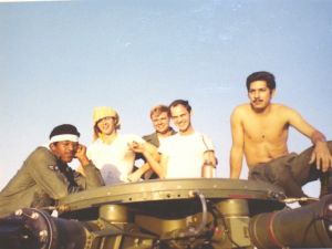 NKP flight line, 40th ARRS night crew on the rotor, March 1972, (L-R) Spring(?), Hatfield, McClure, House, George N. |