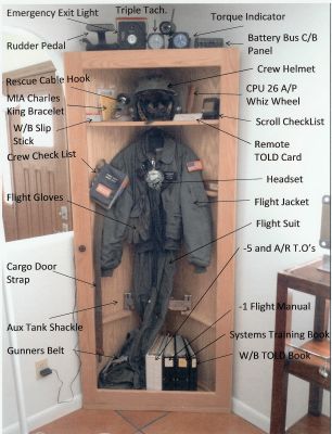 I had a friend build me a corner cabinet to display all my old H-3 Flight Engineer things as well as some H-3 instruments and other things I have collected.