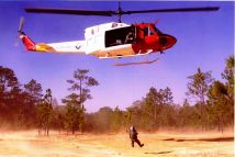 UH-1N 69-66617 Fire Fighting the Choctaw, Florida wild fire (1997) . We made 88 drops with a bambi bucket over a period of three days and acft 617 was used and abused more than I've ever seen a Huey treated. Water pick-ups were in the Gulf of Mexico, sometimes at full power while the fuel was still heavy, and sea spray was everywhere. Most of the drops on the fire were low enough to fill the cabin with smoke, including a drop on a fire jumper who found himself stuck too close to the fire. On the third day, the fire began to subside, and we thought we had a flicker on the transmission chip light but we weren't sure. We landed remotely near the fire and looked everything over, but couldn't repeat the flicker, so we flew her back to Eglin and as we landed on the ramp the chip light came on. 617 was a great Huey!