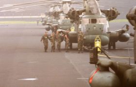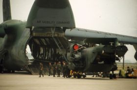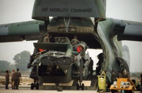 LOADING H-53 ON C-5 ROTA, SPAIN 20 JUNE 1992