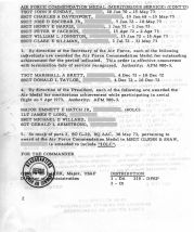 Air Medal Award Ceremony. l-r SSgt. Gerald Armstrong, SSgt Michael E Willard, Lt. James T. Long, Maj. Emmet E Hatch Jr. plus TSgt. Cazares receiving the AF Commendation Medal