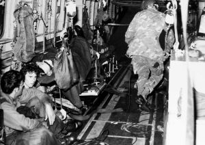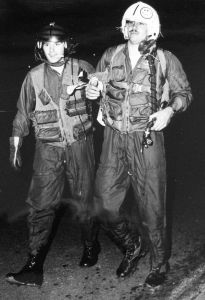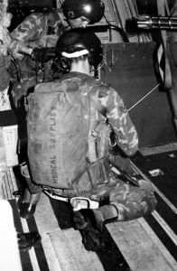 Gary Osborne (standing right), "Bobbin 05 Alpha" (setting left) & "Bobbin 05 Bravo" (setting right) after rescue on