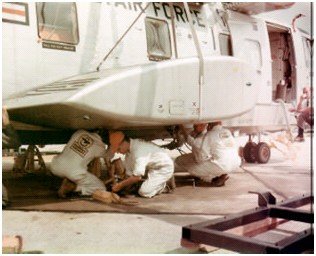 We had some of the best helicopter mechanics ever assembled in one place for this project. Training of these men was done with the prior filming of the job and hands on training from one aircraft to the next with one crew always watching until they all knew each task. Then they were assigned to three and four men crews each working a special area.