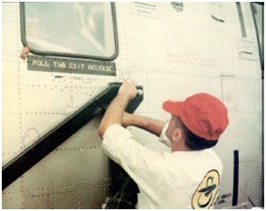 Crews were trained for a 12-hour work shift with half-hour overlap for briefing of the new crew. After the project the tools and jigs selected for the job were tested for strength and some were modified. The heavy transmission sling was tested to pick up the whole aircraft. We later used it this way to put the aircraft in a special cradle so the sponsons could be installed easier and safer than doing it with the small jacks.