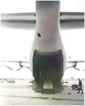 We can now pull the helicopter safely into the C-133. All loading was done with the C-133 loadmaster supervising.