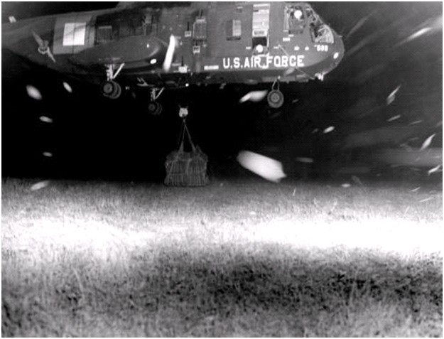 Exercise Goldfire I in 1964 featured mass deliveries by C-130s and further use of the low-level extraction methods. A small provisional unit of USAF CH-3 helicopters performed over 600 assault and resupply sorties: the unit’s commander foresaw “a vastly expanded rotary-wing retail air arm working in concert with a fixed-wing wholesale delivery.”