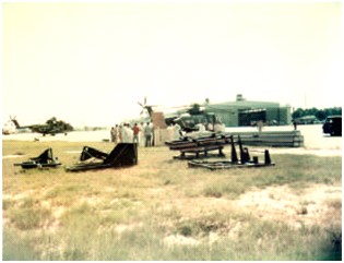 I had come to Memphis the night before and marked the ramp with the six helicopter tail numbers in squares, lined up in two rows to setup our production line assembly for when the aircraft arrived for off loading.
