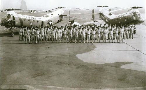 SSgt. Ted Zerbe, A2C Randy McComb, Maj. Glen York, Lt.(jg) Larrie Duthie and 1st Lt. William Privette after the July 18, 1967 of the rescue of Lt. Duthie |
